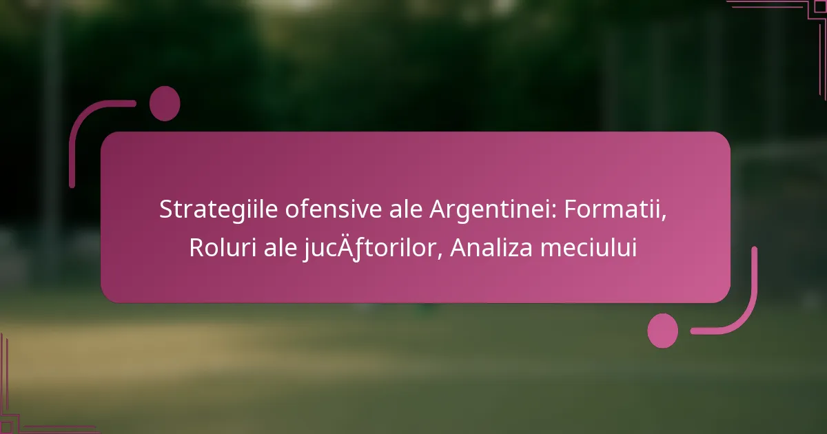 Strategiile ofensive ale Argentinei sunt caracterizate prin utilizarea unor formații precum 4-3-3 și 4-2-3-1, care oferă echipei flexibilitatea de a se adapta la diverse situații de meci. Rolurile distincte ale fiecărui jucător sunt esențiale pentru aceste strategii, deoarece contribuie la crearea oportunităților de a marca și la menținerea presiunii ofensive. Meciurile recente împotriva echipelor de top precum Brazilia și Franța exemplifică abordarea dinamică a Argentinei, evidențiind abilitatea lor de a exploata slăbiciunile adversarilor în timp ce își maximizează propriul potențial de a marca.