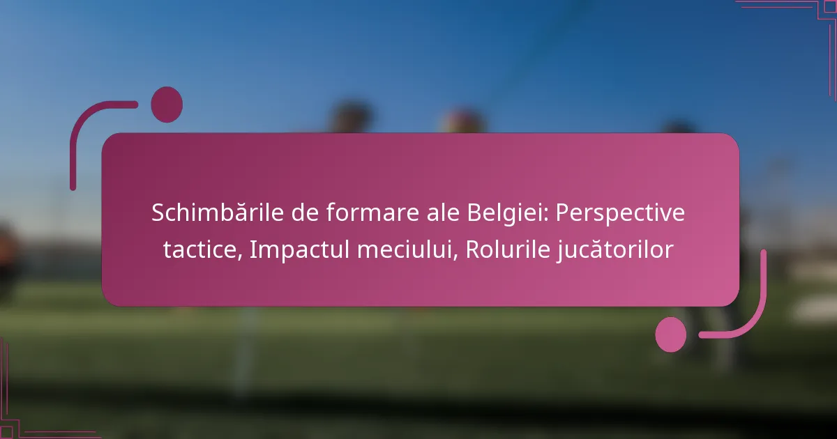 Belgia a schimbat recent abordarea tacticii prin adoptarea unor noi formații pentru a îmbunătăți performanța echipei și a se adapta adversarilor. Aceste schimbări reflectă o evoluție strategică menită să maximizeze punctele forte ale jucătorilor și să abordeze slăbiciunile în situațiile de meci.