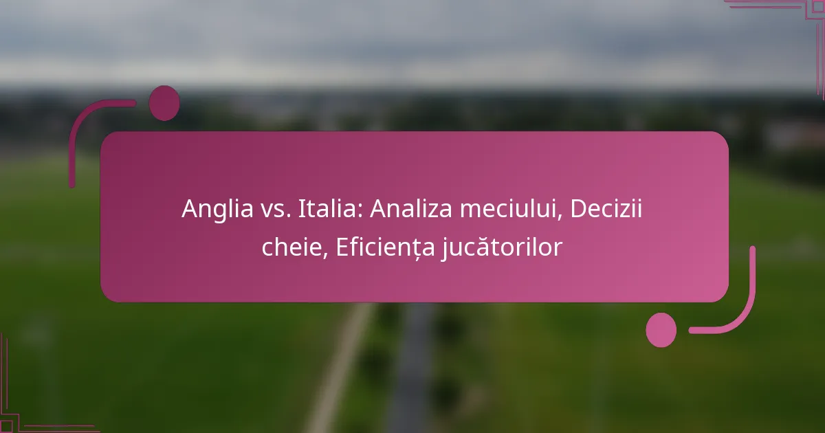 Anglia vs. Italia: Analiza meciului, Decizii cheie, Eficiența jucătorilor