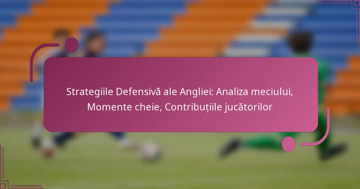 Strategiile Defensivă ale Angliei: Analiza meciului, Momente cheie, Contribuțiile jucătorilor