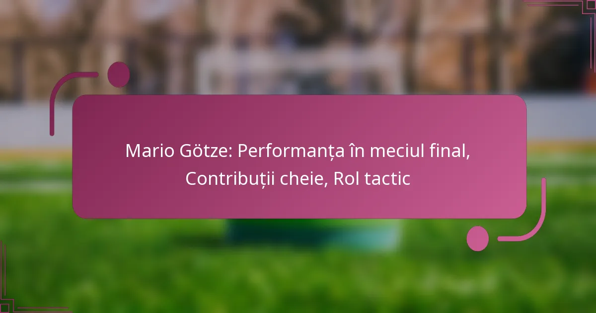Care au fost contribuțiile cheie ale lui Mario Götze în ultimul meci?