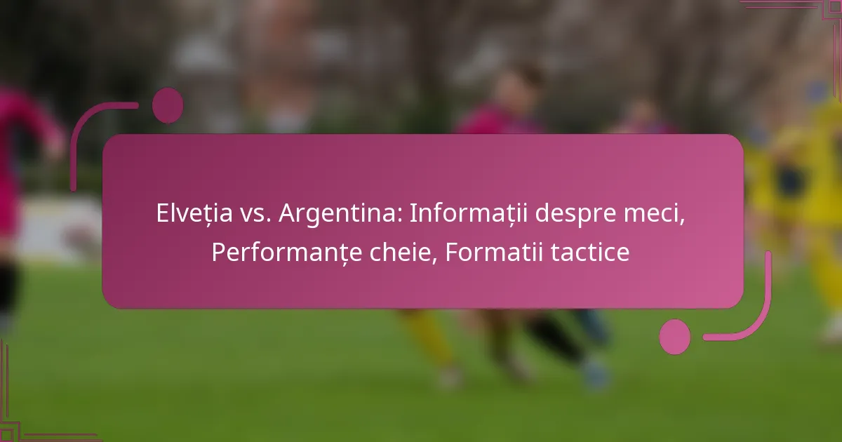 Elveția vs. Argentina: Informații despre meci, Performanțe cheie, Formatii tactice